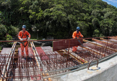 Com 690 trabalhadores divididos em três turnos, a construção avançou com instalação de novos pares de estais em apenas uma