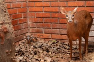 Quando identificam que uma fêmea está prenha, eles separam o casal e deixam a futura mamãe em um recinto especial para que ela tenha o parto nas melhores condições. Na “maternidade” do RBV, as mães anta e veado-bororó ficaram em “quartos” próximos, um de frente para o outro.