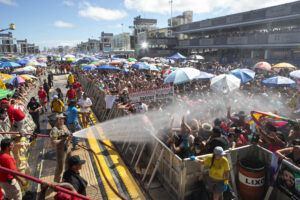 Banhos de mangueira, água e ambulâncias: Estado cuida do público antes e durante shows no Litoral