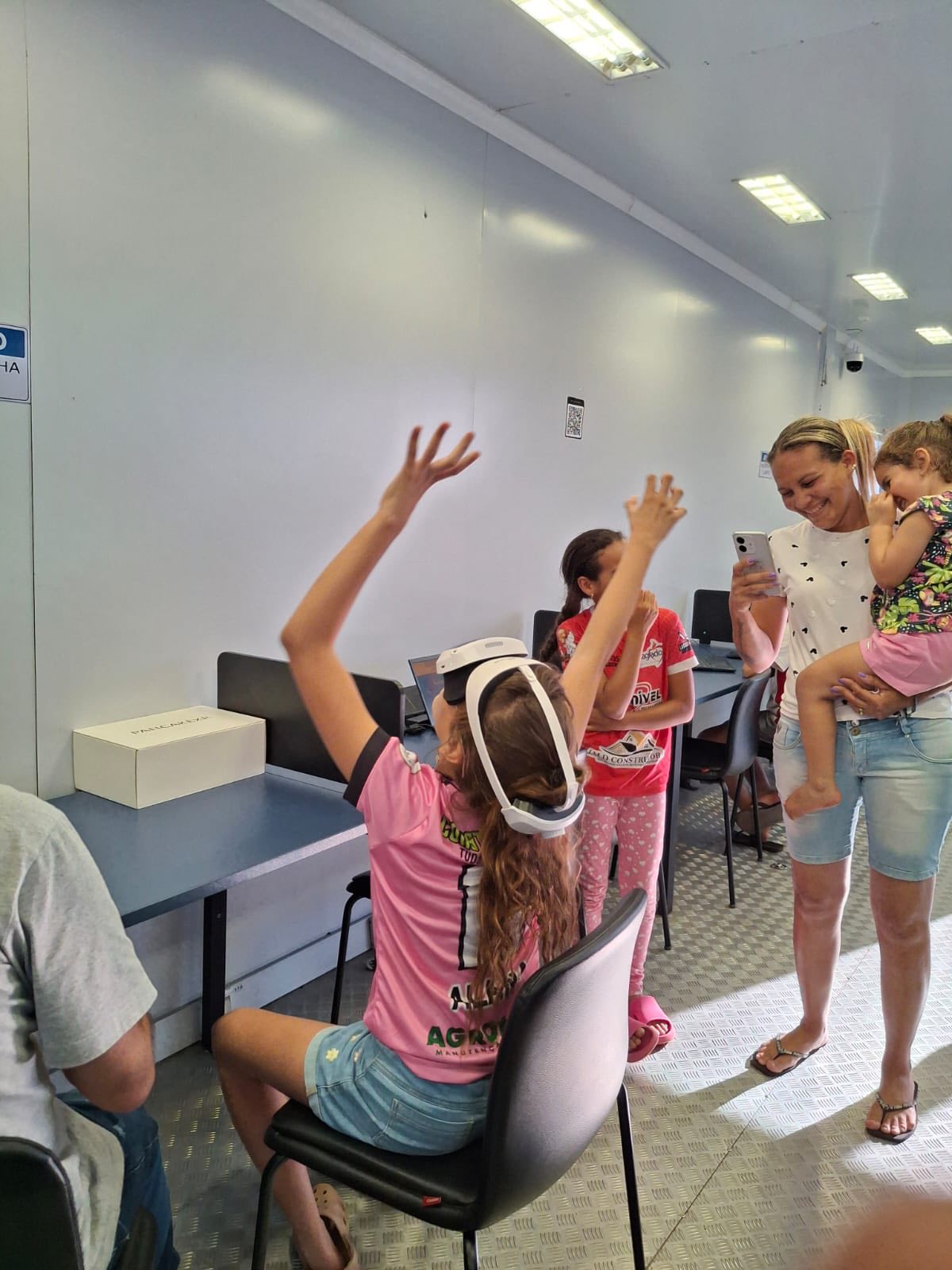 A carreta está estacionada na Arena Jumbeira e permanecerá aberta para visitação até o dia 26/07. Não perca a chance de conhecer esse projeto inovador do Governo do Estado do Paraná. Venha se surpreender com o futuro da tecnologia!”