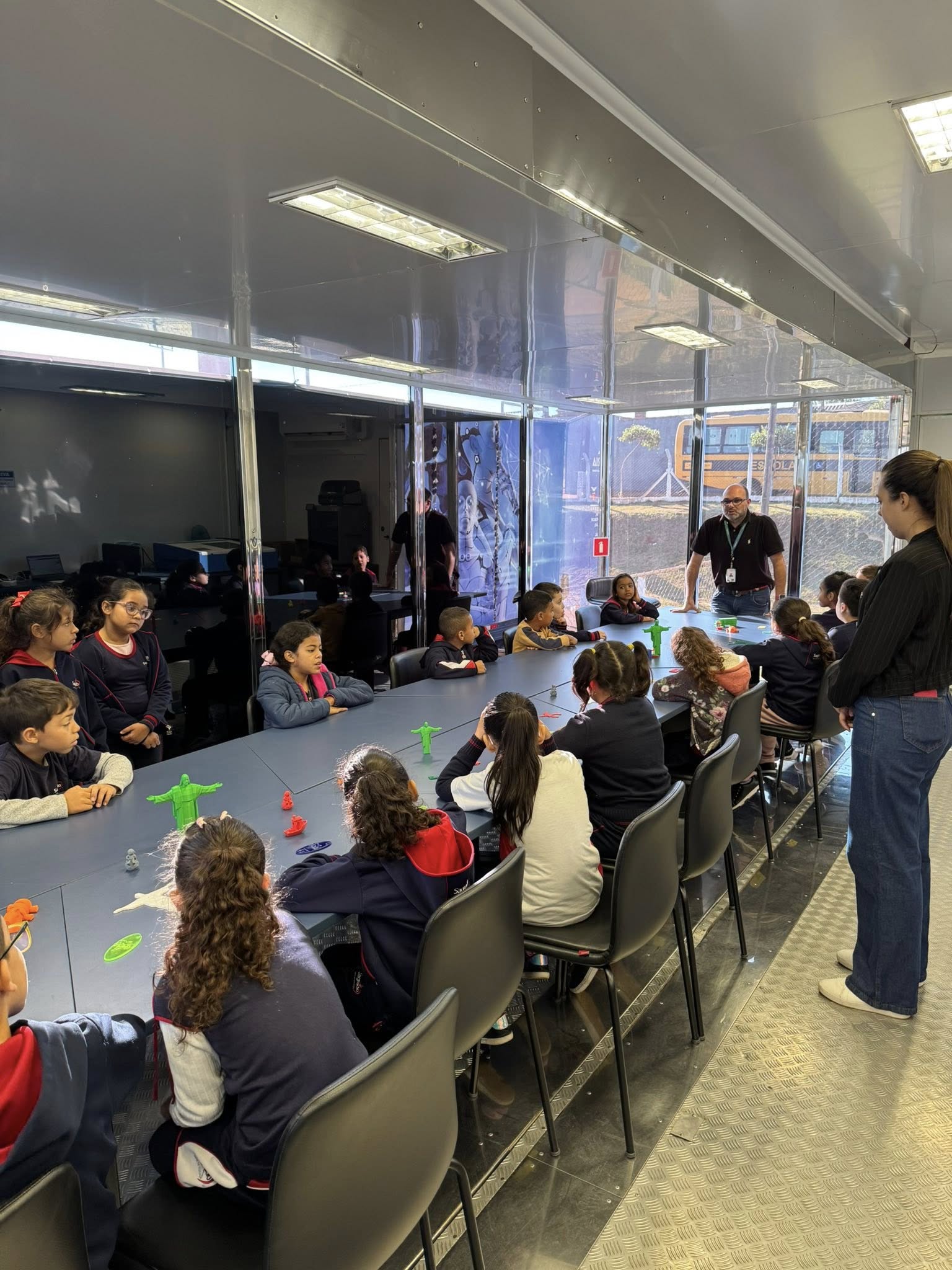 “No dia 23/07, os alunos da Escola Social Clélia Merloni tiveram a oportunidade de visitar a Carreta da Inovação, uma iniciativa que leva tecnologia, ciência e conhecimento a diferentes municípios do Paraná.