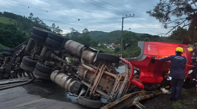 Um grave acidente de trânsito registrado na madrugada desta segunda-feira (12), por volta das 3h50, mobilizou equipes de resgate na BR-282 (Rodovia Ulysses Guimarães), na região central do município de Águas Mornas, em Santa Catarina. A ocorrência foi atendida pelo Corpo de Bombeiros Militar de Santa Catarina (CBMSC) e envolveu a colisão entre dois veículos de carga.