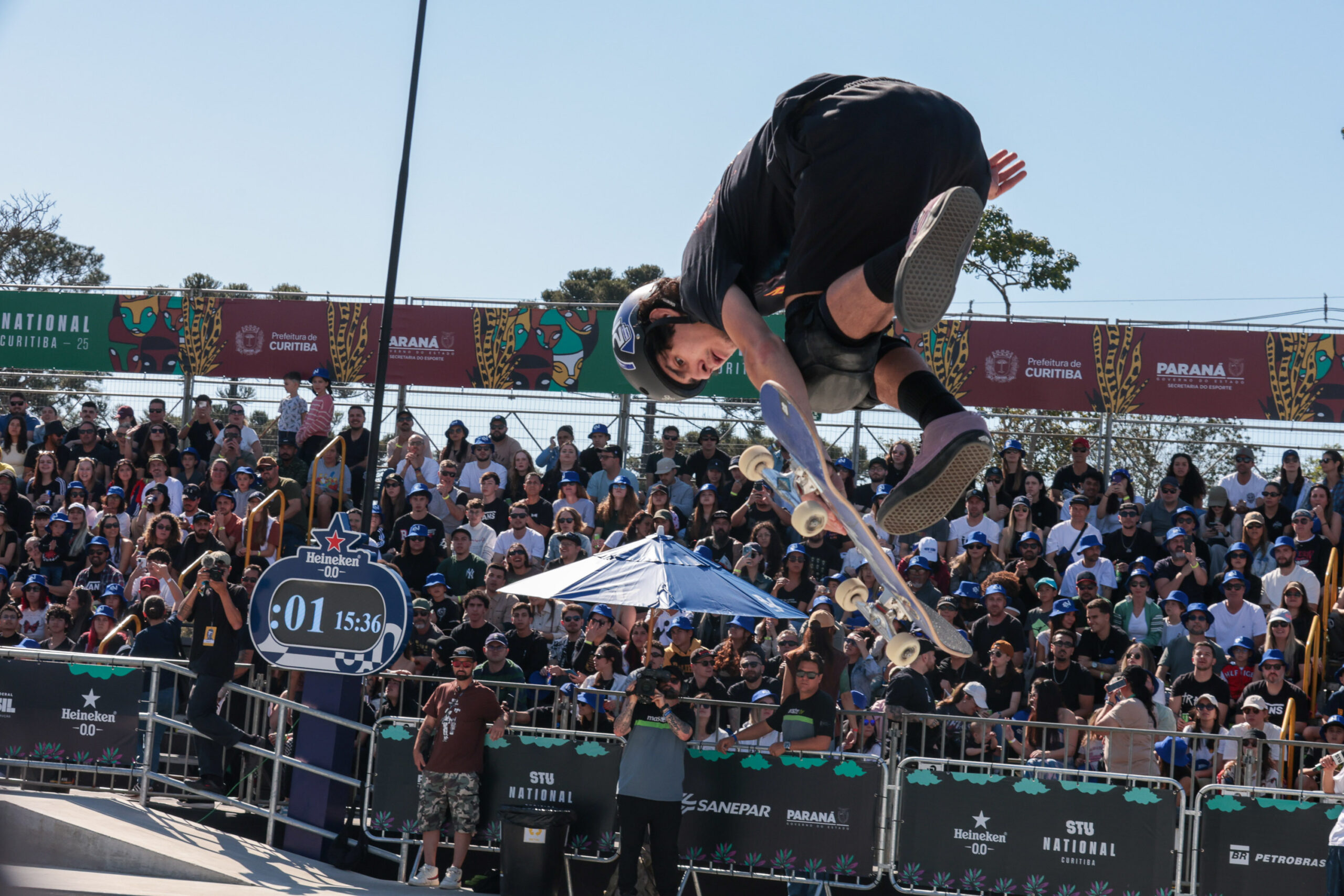 O STU National 2025, principal torneio de skate do Brasil, disputado em Curitiba, terminou em grande estilo neste domingo (27), com casa cheia, estrutura elogiada e ídolos locais da modalidade no topo do pódio. Diante de cerca de três mil pessoas nas arquibancadas do Centro Nacional de Treinamento de Skateboarding (CNSK8) do Complexo Esportivo Tarumã, espaço do Governo do Estado, os curitibanos Augusto Akio, o Japinha, confirmou o favoritismo e venceu a final na modalidade Park, assim como Felipe Nunes vencedor no Paraskate Street. O encerramento da etapa consagrou não só os campeões, mas também a cidade como um dos grandes palcos do skate brasileiro.
