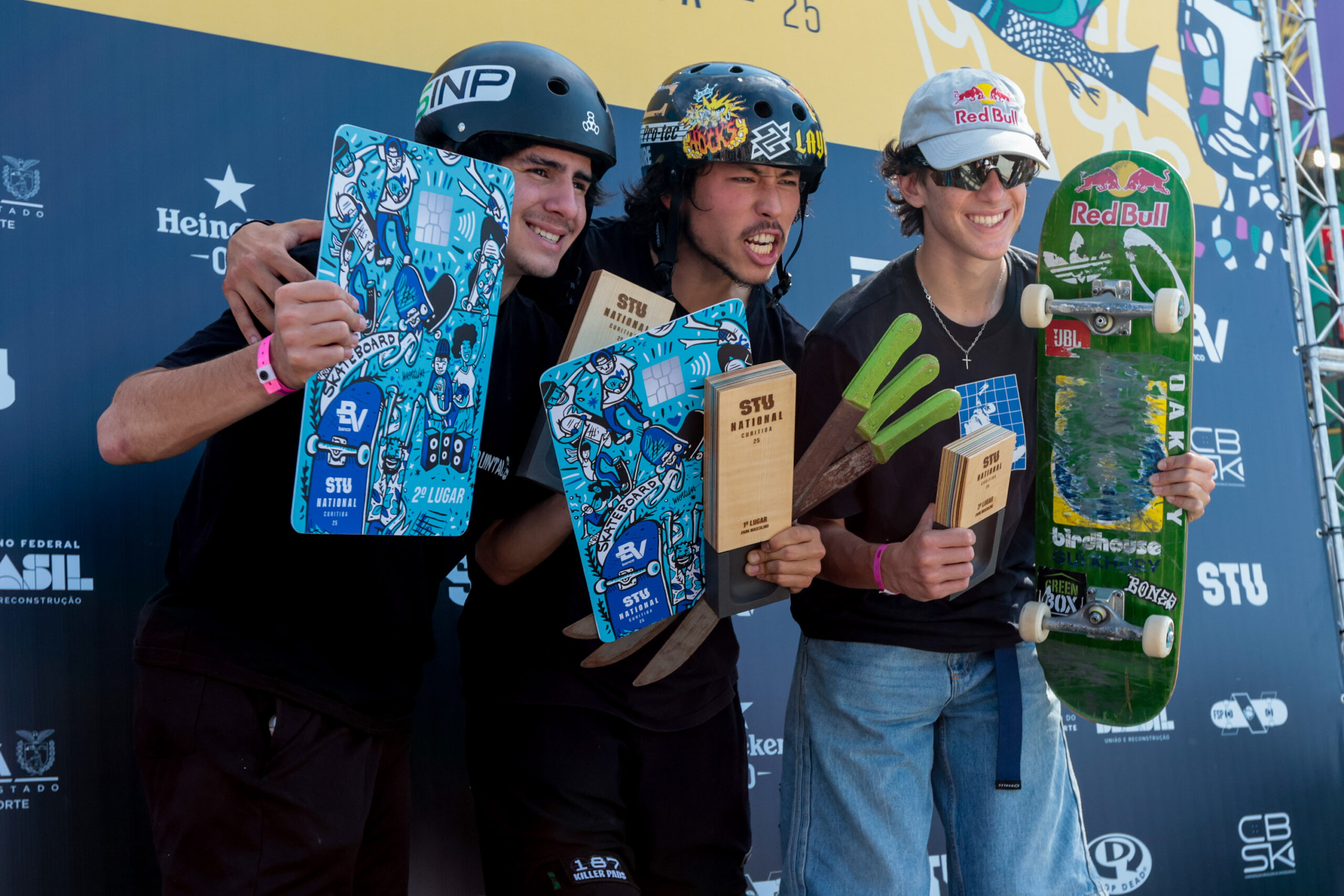 STREET MASCULINO – Em uma virada surpreendente, o paulistano Gabryel Aguilar conquistou a terceira etapa do STU na modalidade Street na última volta com 91,30 pontos, enquanto Ivan Monteiro, que liderou durante toda a prova, terminou com 90,85. Gabryel, que já havia conquistado a segunda edição em Florianópolis e o vice na primeira em Criciúma, agora se isola na liderança da edição de 2025.