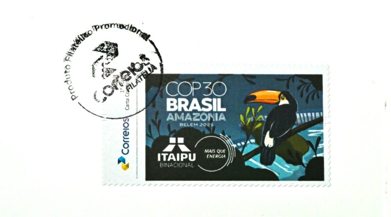 Correios lançam selos comemorativos no estande da Itaipu na COP30