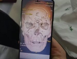 Olhando para a tomografia do crânio de Marcos Ribeiro de Lima em pedaços após um acidente de moto, é difícil imaginar que ele se recupera praticamente sem sequelas.