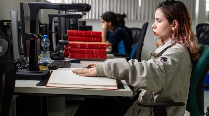 Gerente de projetos da empresa, Fernando Henrique Andrade explica que o trabalho envolve equipamentos especializados para diferentes tipos de documentos históricos. “Acho que a gente tem equipamentos que são os padrões, que são scanners, padrões de alta velocidade, mas a gente pode focar também nos scanners que a gente chama planetário, que é o scanner que a gente utiliza para digitalização de livro, onde a gente não precisa descaracterizar o livro para poder gerar imagem. Nós temos os equipamentos que vão fazer a captura do microfilme e também das jaquetas, que são documentos mais antigos. Temos equipamentos específicos para atender essa demanda”, disse.