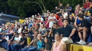 Arquibancada lotada na inauguração oficial da iluminação do Estádio José Aparecido de Morais.