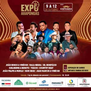 Com o slogan “Arapongas: nossa cidade, nosso compromisso”, a Expo Arapongas 2025 promete ser um marco na história da cidade, celebrando o aniversário do município com muita música, cultura e diversão em um ambiente seguro e gratuito para toda a população.