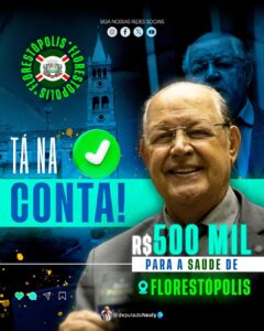 Florestópolis comemora mais uma conquista importante para o fortalecimento da saúde pública. O município recebeu um repasse de R$ 500 mil destinados à área da saúde, fruto de uma emenda do deputado federal Luiz Carlos Hauly. O valor será aplicado em melhorias no atendimento à população e na estrutura dos serviços oferecidos pela rede municipal.