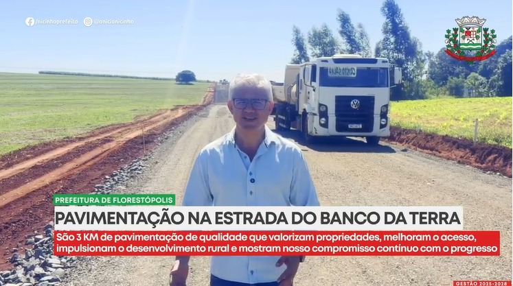 “Florestópolis hoje é um verdadeiro canteiro de obras, e isso mostra que o trabalho não para. Estamos levando mais qualidade de vida para a nossa população, com 3 quilômetros de pavimentação rural e mais de 2 milhões de reais em investimentos na comunidade do Banco da Terra.