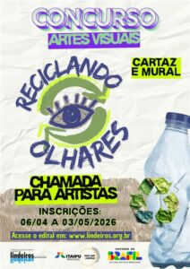 Categoria Cartaz: seleção de artes visuais digitais que irão compor a Exposição Itinerante “Reciclando Olhares”, que circulará pela região a partir de junho. Serão selecionadas até 20 propostas, com premiação individual no valor de R$ 1.500,00.