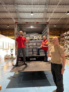 No sábado (dia 8), o primeiro caminhão com materiais foi enviado para Rio Bonito do Iguaçu. A equipe binacional da Superintendência de Materiais, vinculada à Diretoria Financeira de Itaipu, mobilizou-se para separar telhas de fibrocimento e de barro, garrafas de água mineral, rolos de papel higiênico, copos plásticos, sacos de lixo de 100 litros, lanternas, pás e enxadas – materiais essenciais para auxiliar nas ações de recuperação do município.