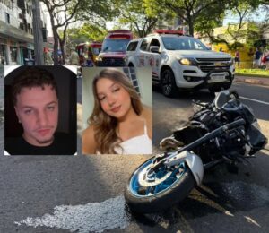 Um grave acidente ocorrido na tarde desta quinta-feira (20), na Avenida Brasil, área central de Maringá, causou a morte de um jovem casal morador de Paiçandu. As vítimas foram identificadas como Alan Christopher Cassol Rodrigues, de 20 anos, condutor de uma motocicleta de alta cilindrada, e Tamiris Alves, de 18 anos, que estava na garupa.