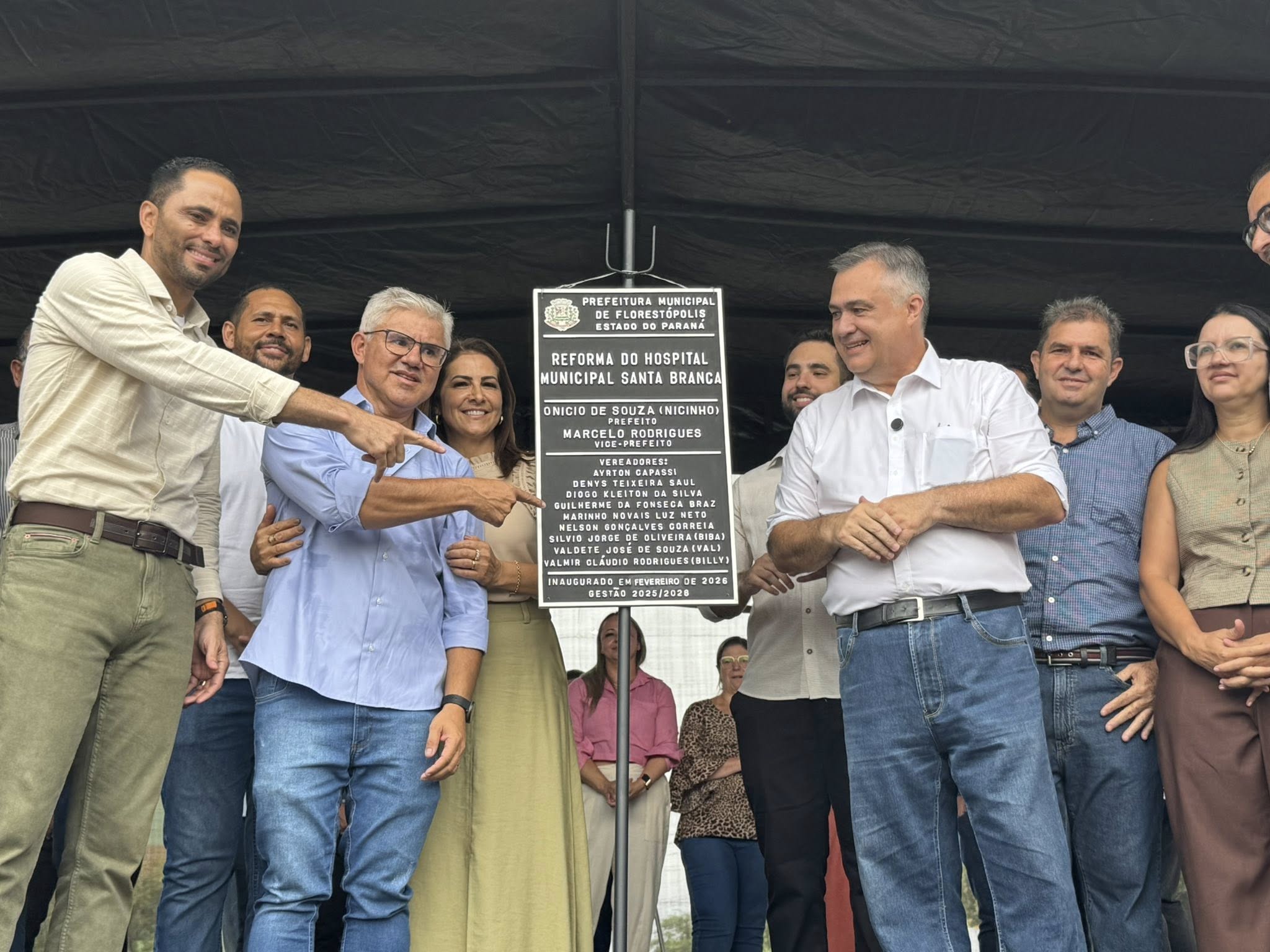 25/02/2026 – O prefeito Nicinho e o vice-prefeito Marcelão, ao lado de vereadores, lideranças locais e autoridades estaduais e regionais, entregaram oficialmente a reforma do Hospital Municipal Santa Branca, em Florestópolis. A obra contou com investimento aproximado de R$ 1 milhão, entre melhorias estruturais e aquisição de novos equipamentos.