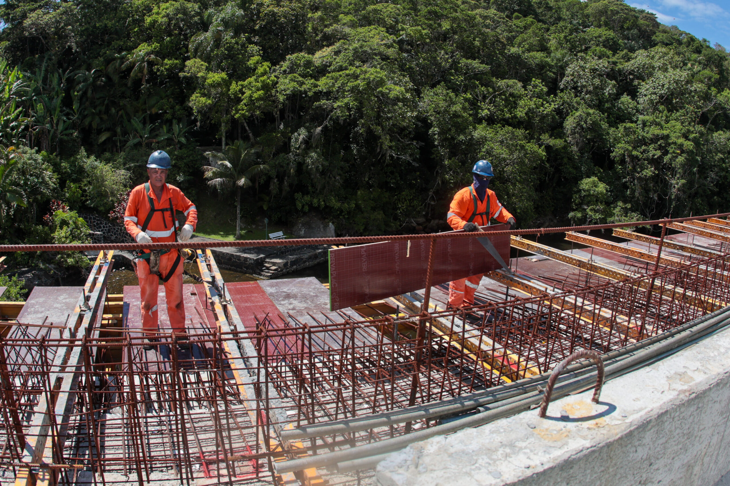 Atualmente, são 690 trabalhadores atuando na construção, organizados em três turnos diários. A mobilização integral das equipes permitiu avanços importantes na última semana, especialmente no trecho estaiado, considerado o segmento de maior complexidade técnica da estrutura.