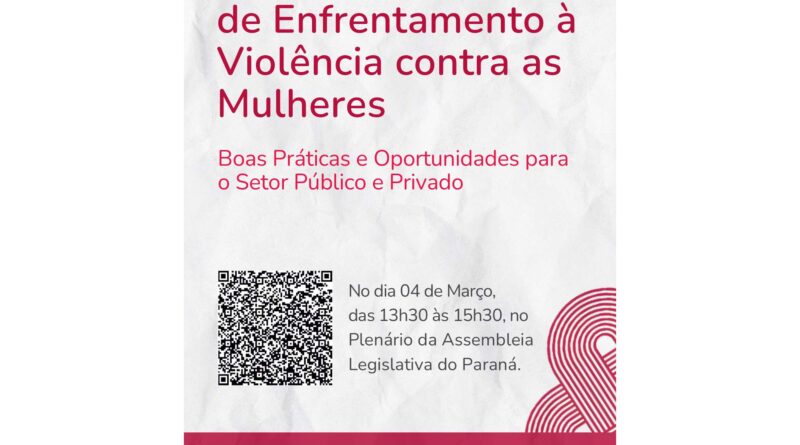 O Governo do Estado, por meio da Secretaria da Mulher, Igualdade Racial e Pessoa Idosa (Semipi), promove no dia 4 de março, às 13h30, no Plenário da Alep, o evento “Selo ABNT e Políticas de Enfrentamento à Violência contra as Mulheres: boas práticas e oportunidades para o setor público e privado”. O evento conta com parceria da Assembleia Legislativa do Paraná.
