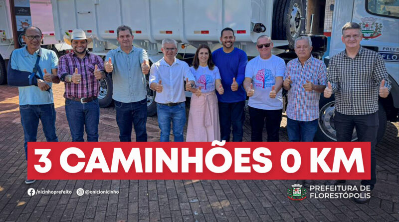 Florestópolis conquistou mais um importante reforço para a melhoria dos serviços públicos. A administração municipal, sob a liderança do prefeito Nicinho e do vice-prefeito Marcelão, recebeu três novos caminhões que passam a integrar a frota do município. O investimento total foi de R$ 1.824.000,00, em recursos destinados pelo Governo do Estado do Paraná.