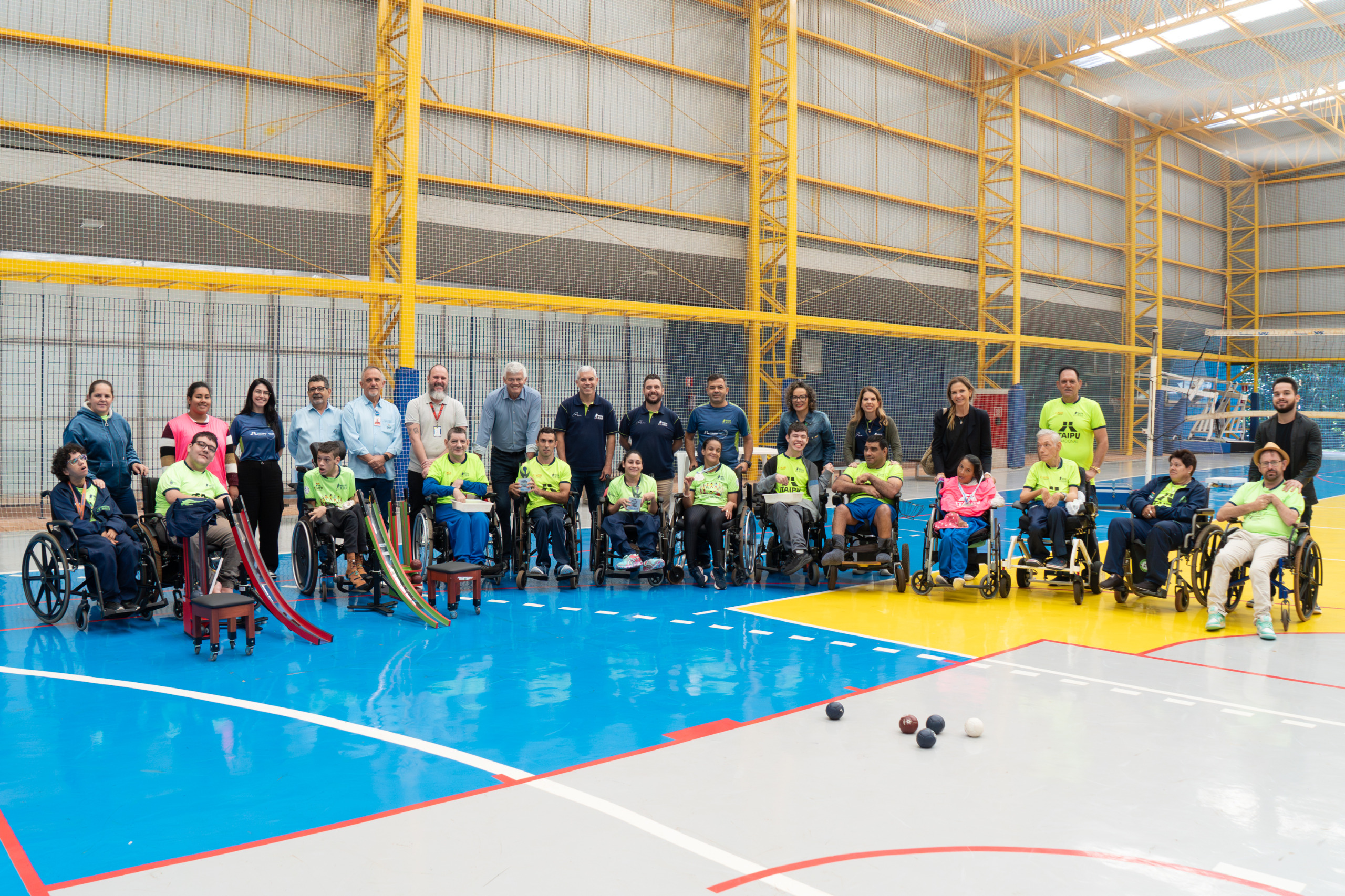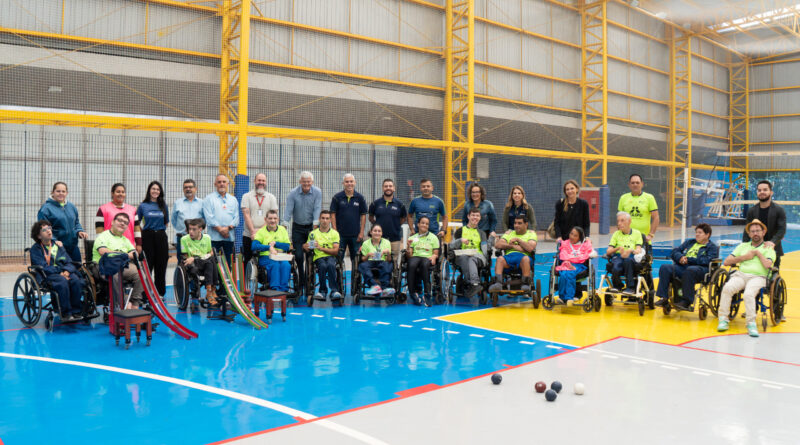 Ex-jogador de futebol visitou alunos de bocha paralímpica, acompanhado pela diretoria da Itaipu, e parabenizou atletas premiados em competição estadual