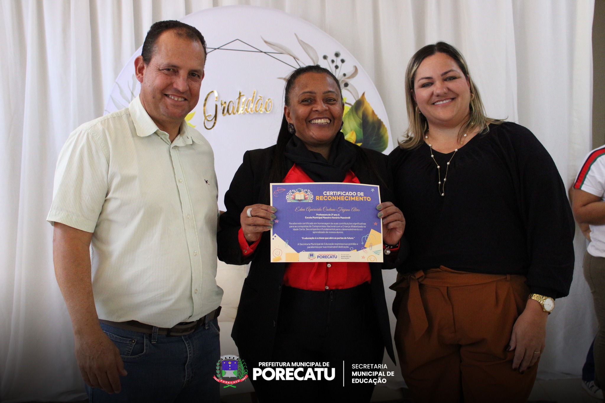 A secretária municipal de Educação, Bruna Amaral, destacou a importância do momento, expressando sua gratidão e honra em celebrar o trabalho dos profissionais que se dedicam com tanto empenho à formação das crianças porecatuenses. “É um privilégio reconhecer esses educadores que realizam um trabalho de excelência e fazem a diferença na vida de nossos alunos”, afirmou.