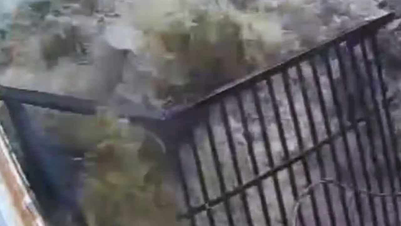 As imagens obtidas pela reportagem revelam a violência da enxurrada: a água atravessa um muro, invade uma residência e segue avançando pelas ruas do bairro, arrastando tudo o que encontra no caminho. Carros estacionados são empurrados como se fossem brinquedos e postes cedem com facilidade diante da força hídrica.