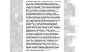 Na publicação, ele também mencionou os filhos, escrevendo que “partimos eu e meus meninos que agora são anjos que infelizmente vieram comigo”. O conteúdo da carta foi divulgado pela Jovem Pan News Nacional e causou forte comoção na cidade e na região.