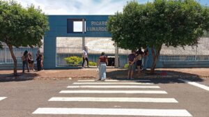 Candidatos do Enem chegam ao Colégio Estadual Ricardo Lunardelli (CERL), em Porecatu, para o primeiro dia de provas — Foto: Paulo Silva.